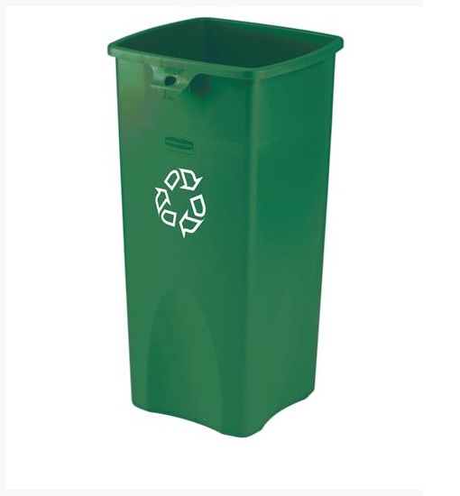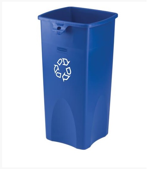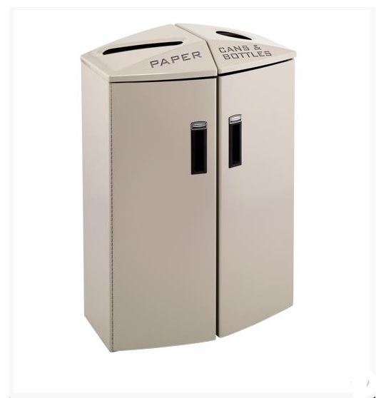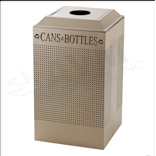 Square 29 Gallon Perforated Cold Rolled Steel Recycling Unit with Plastic Liner for Cans - Desert Pearl