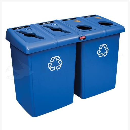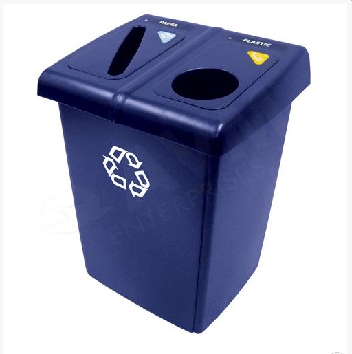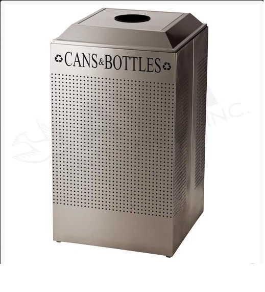 Square 29 Gallon Perforated Cold Rolled Steel Recycling Unit with Plastic Liner for Cans - Stainless Steel