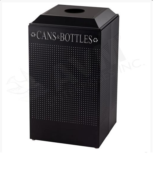Square 29 Gallon Perforated Cold Rolled Steel Recycling Unit with Plastic Liner for Cans - Textured Black