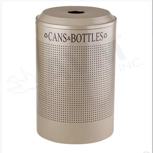 Round 26 Gallon Perforated Cold Rolled Steel Recycling Unit with Plastic Liner for Cans - Desert Pearl