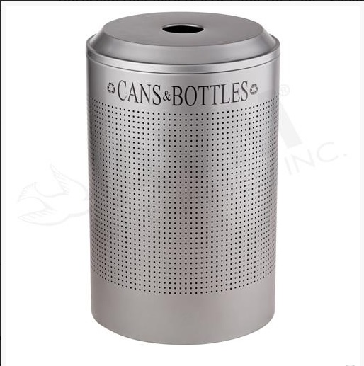 Round 26 Gallon Perforated Cold Rolled Steel Recycling Unit with Plastic Liner for Cans - Silver Metallic