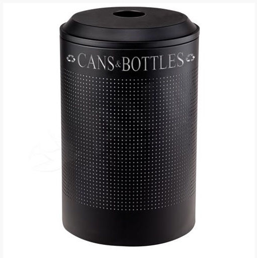 Round 26 Gallon Perforated Cold Rolled Steel Recycling Unit with Plastic Liner for Cans - Textured Black