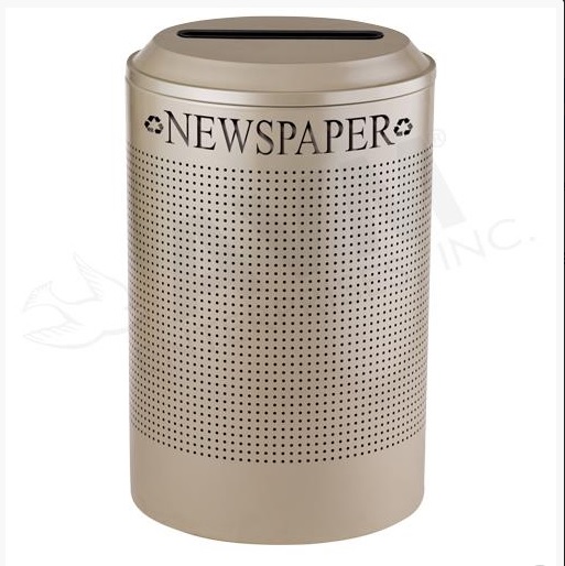 Round 26 Gallon Perforated Cold Rolled Steel Recycling Unit with Plastic Liner for Paper - Desert Pearl
