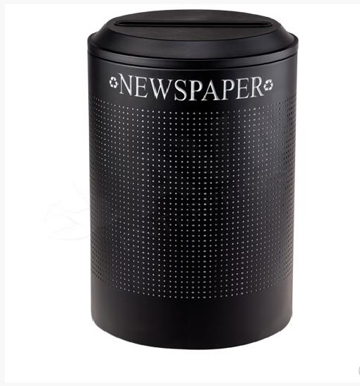 Round 26 Gallon Perforated Cold Rolled Steel Recycling Unit with Plastic Liner for Paper - Textured Black