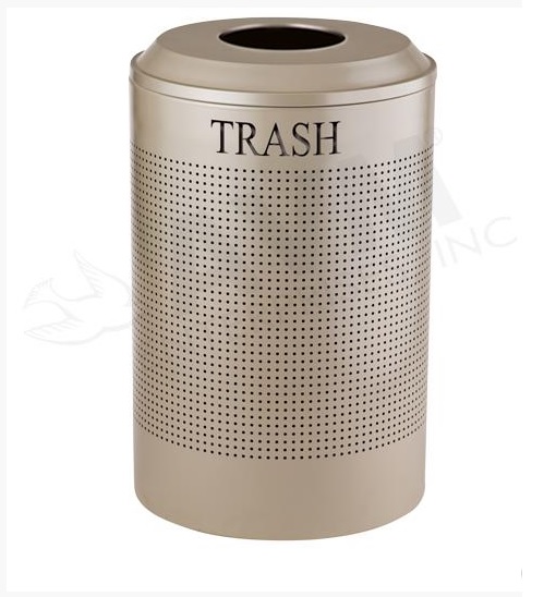 Round 26 Gallon Perforated Cold Rolled Steel Recycling Unit with Plastic Liner for Trash - Desert Pearl